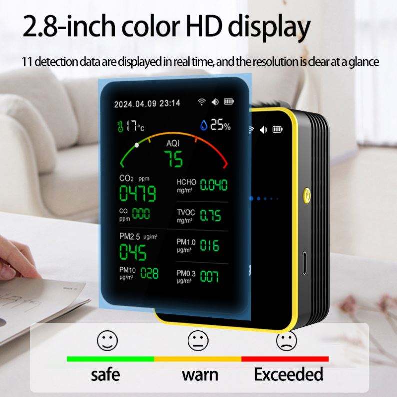 เครื่องตรวจวัดคุณภาพอากาศ M15 รุ่นพรีเมียม พร้อมหน้าจอ HD แบตเตอรี่แบบชาร์จได้ เชื่อมต่อ WiFi เหมาะสำหรับเป็นของขวัญ
