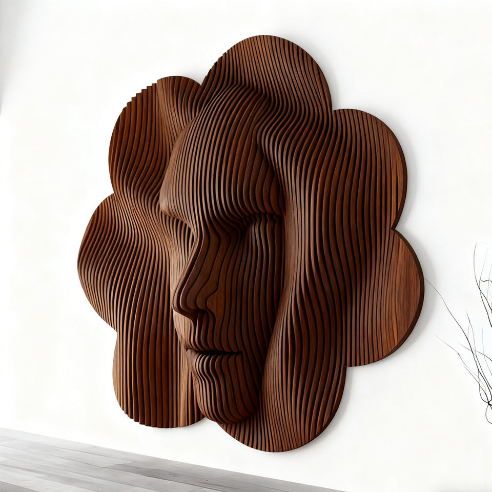 งานประติมากรรมรูปหน้าคนลายไม้โค้ง M16 สไตล์อาร์ตเดโค ลายดอกไม้ โครงสร้างหลายชั้น รักษ์โลก ทนทานต่อรังสียูวี ของตกแต่งผนังแบบศิลปะ