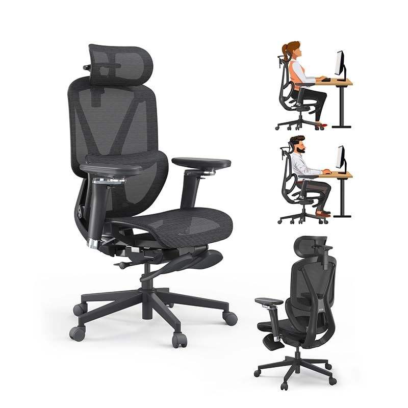 เก้าอี้สำนักงานเออร์โกโนมิกส์ M2-MT พนักพิงสูง รองรับหลังส่วนล่างแบบยืดหยุ่นได้ ที่พักเท้าแบบยืดหดได้ ที่รองศีรษะแบบ 3 มิติ เก้าอี้นั่งสบาย