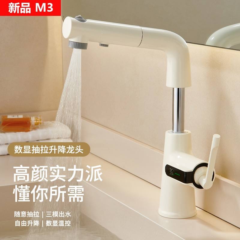 ก๊อกน้ำอ่างล้างหน้าสีขาวนม M23 แบบก้านเดี่ยว ดึงออกได้ ติดตั้งบนเคาน์เตอร์ สไตล์โมเดิร์น สำหรับห้องน้ำ