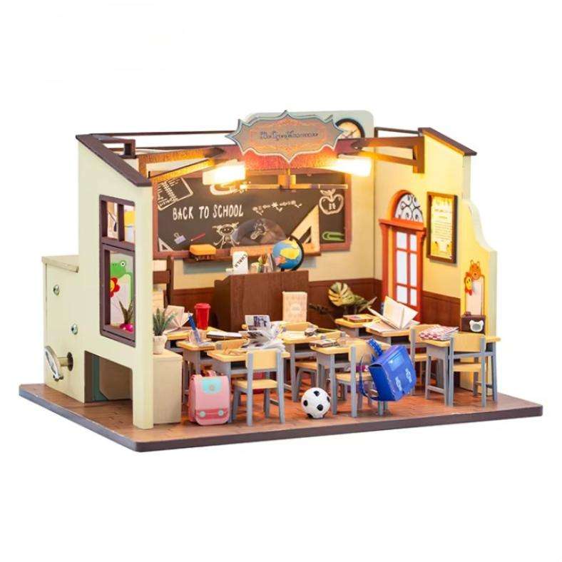 M2321ความไร้เดียงสาบ้านตุ๊กตาไม้ขนาดเล็กบ้านตุ๊กตาที่กำหนดเองบ้านตุ๊กตา DIY ชุดบ้านตุ๊กตาขนาดเล็กพร้อมไฟ
