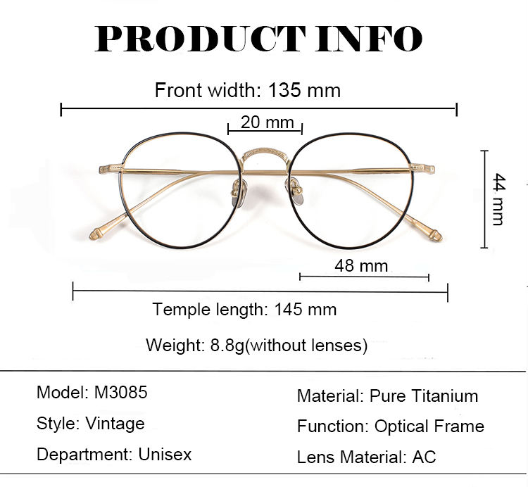 กรอบแว่นตา M3085 วินเทจ ไทเทเนียมแท้ น้ำหนักเบาพิเศษ ทรงเต็มกรอบ สำหรับผู้ใหญ่ทั้งชายและหญิง สไตล์มัตสึดะ ดีไซน์รูปไข่แกะสลักลายเพชร