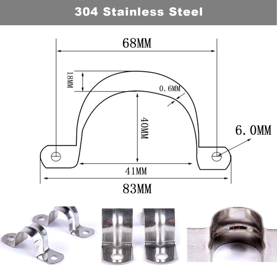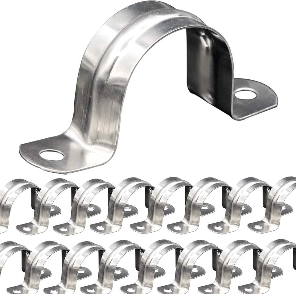 สายรัดท่อเหล็กกล้าไร้สนิม M40 (1 1/2 นิ้ว) แบบแข็ง, ตัวยึดท่อสำหรับงานหนัก, พร้อมตัวยึดสายเคเบิลแบบ U 2 รู