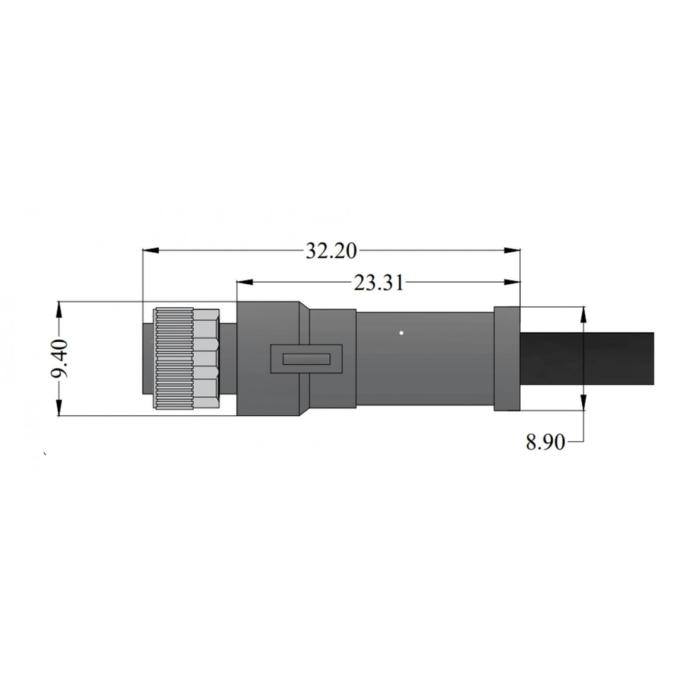 รหัส M8ตัวเมียตรง0องศา4-พิน4x0.34มม. สายสีดำไม่หุ้มฉนวน10Mtr สายทองแดงผสม IP68กรอบ TPU