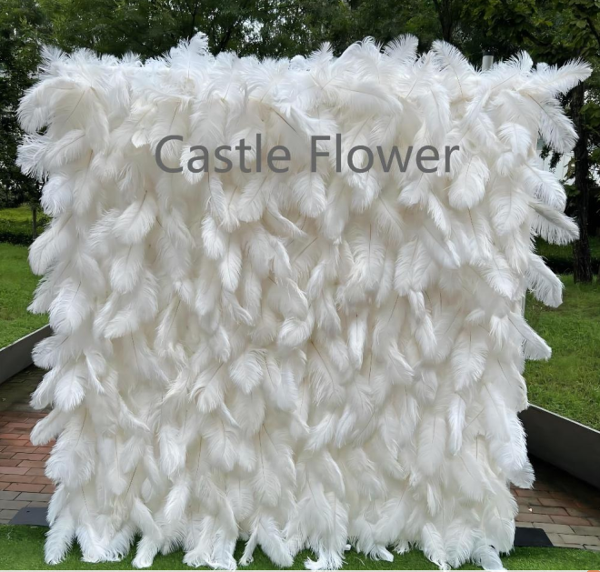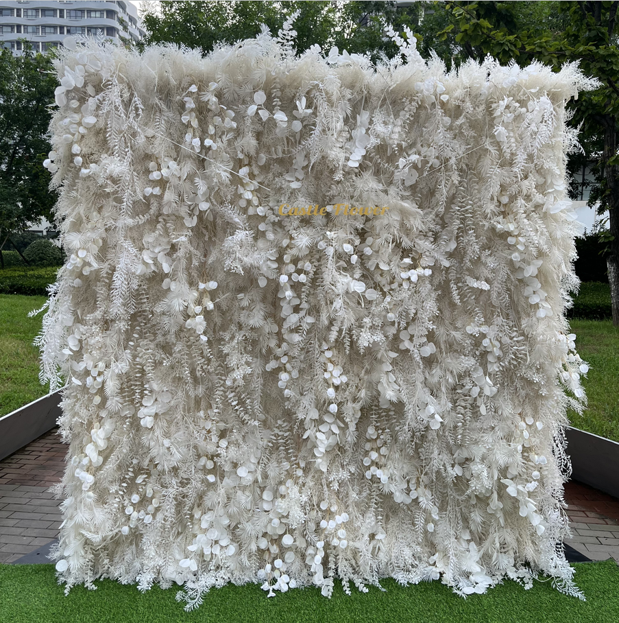 ชื่อสินค้า:แผงฉากหลังดอกไม้ผ้าไหม ดอกกุหลาบ ขนนกปามปัสธรรมชาติ