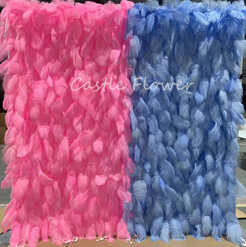 แผงฉากหลังดอกไม้ผ้าไหม ดอกกุหลาบ ขนนกปามปัสธรรมชาติ