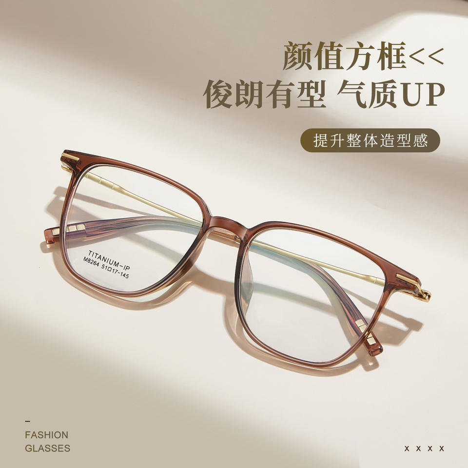 กรอบแว่นตาทรงสี่เหลี่ยม M8264 กรอบเต็ม เลนส์อะคริลิก น้ำหนักเบา ขาแว่นไทเทเนียม สำหรับทุกเพศ ผลิตที่ตานหยาง