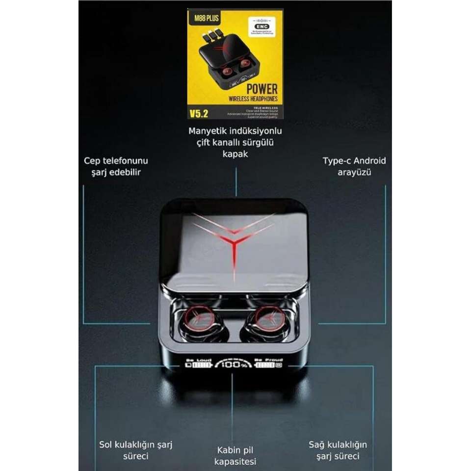 M88 Plus Wireless Touch Earbud Bluetooth Headset with Enc and Powerbank