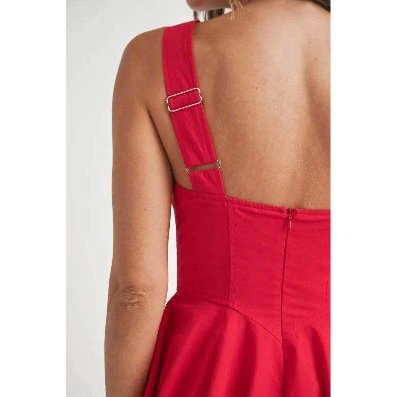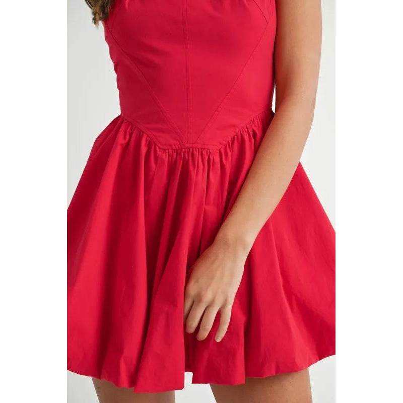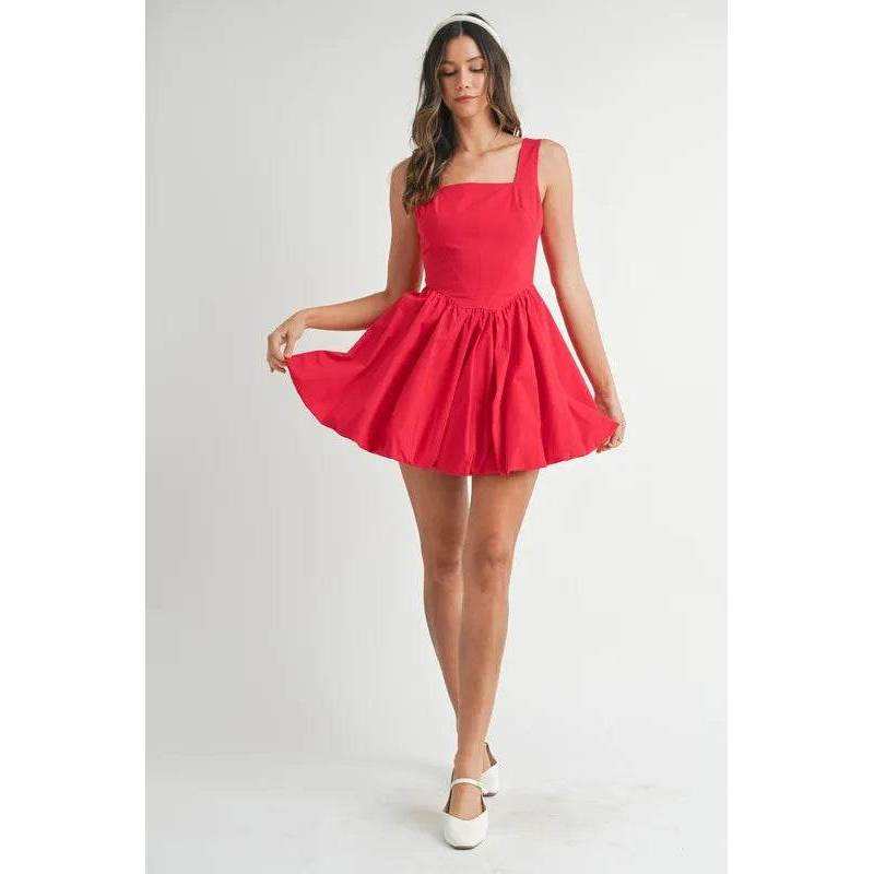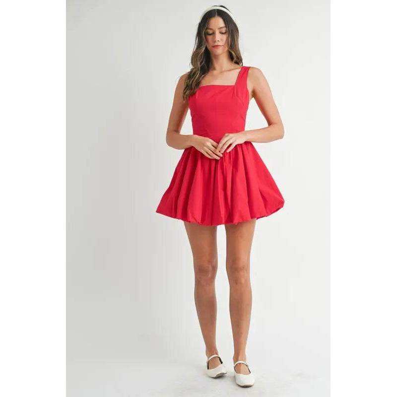 Mable poplin ชุดเดรสมินิฟองคอสี่เหลี่ยมสีแดงขนาด S ตัวแปรที่เติมเต็มด้วยมือ