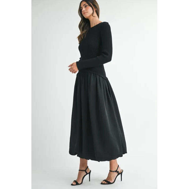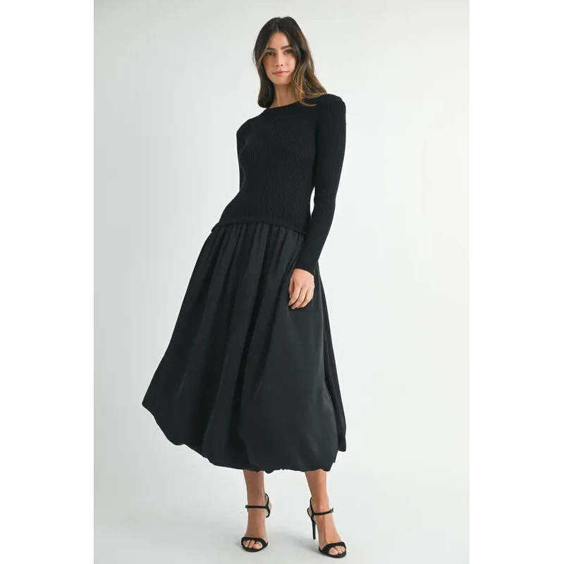 เดรสไหมพรมผสมผ้าป๊อปลินสีดำสำหรับผู้หญิง ยี่ห้อ MABLE ไซส์ S