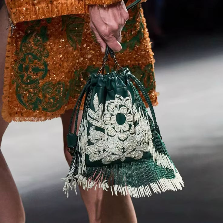 กระดุม, กระเป๋า, โซ่, ของประดับด้วยลูกปัด, ไข่มุก, ปักผ้า