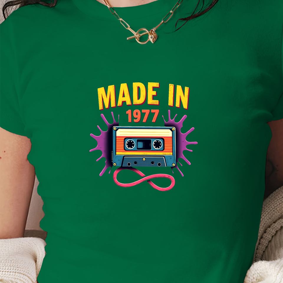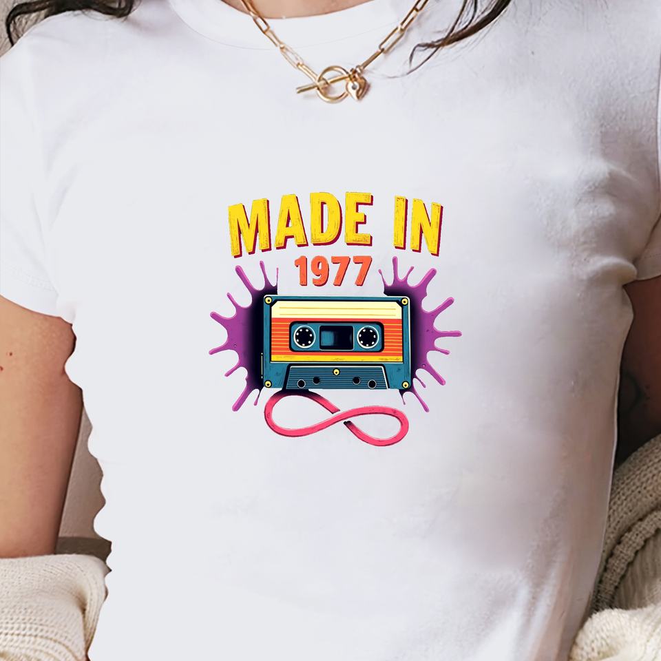 เสื้อยืดสั้นผู้หญิงเทปคาสเซ็ทแนววินเทจใน1977