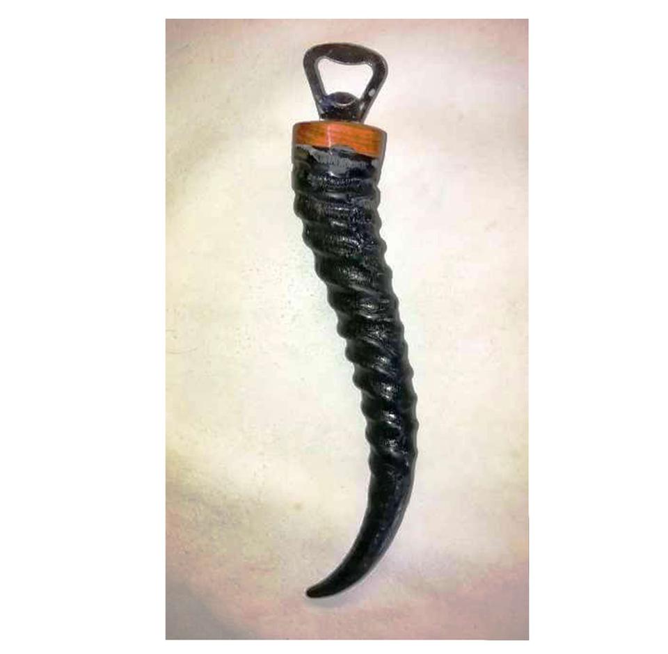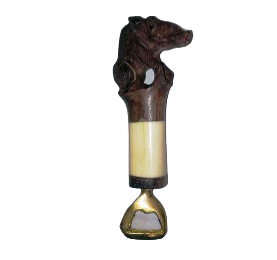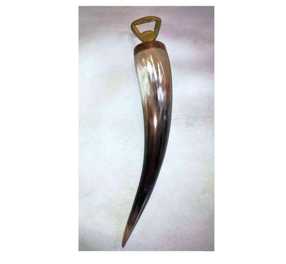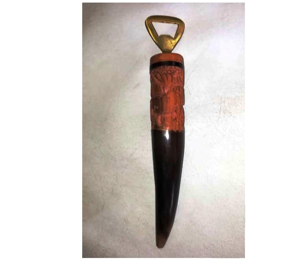ที่เปิดขวดสแตนเลสแบบโบราณทำในอินเดียด้ามจับเป็นแตรทำจากไม้รูปกระดูกสไตล์แอฟริกันสินค้าที่แข็งแรงมากสำหรับคนรักสัตว์