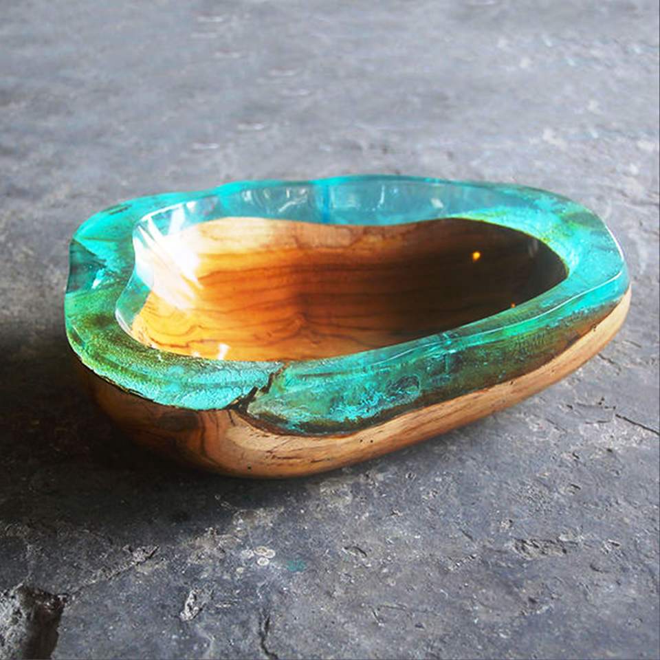 ชามไม้เรซินเคลือบเงาสีทองทำจากไม้และเรซินในอินเดีย