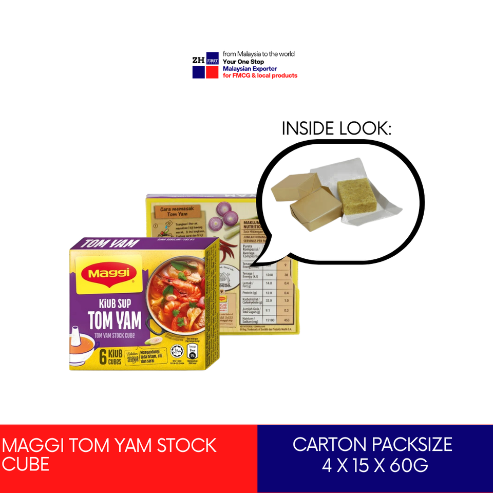 Magg I TOM Yam Stock Cube 60g, ทำจากกุ้งแท้และตะไคร้มาเลเซียส่งตรงจากโรงงาน