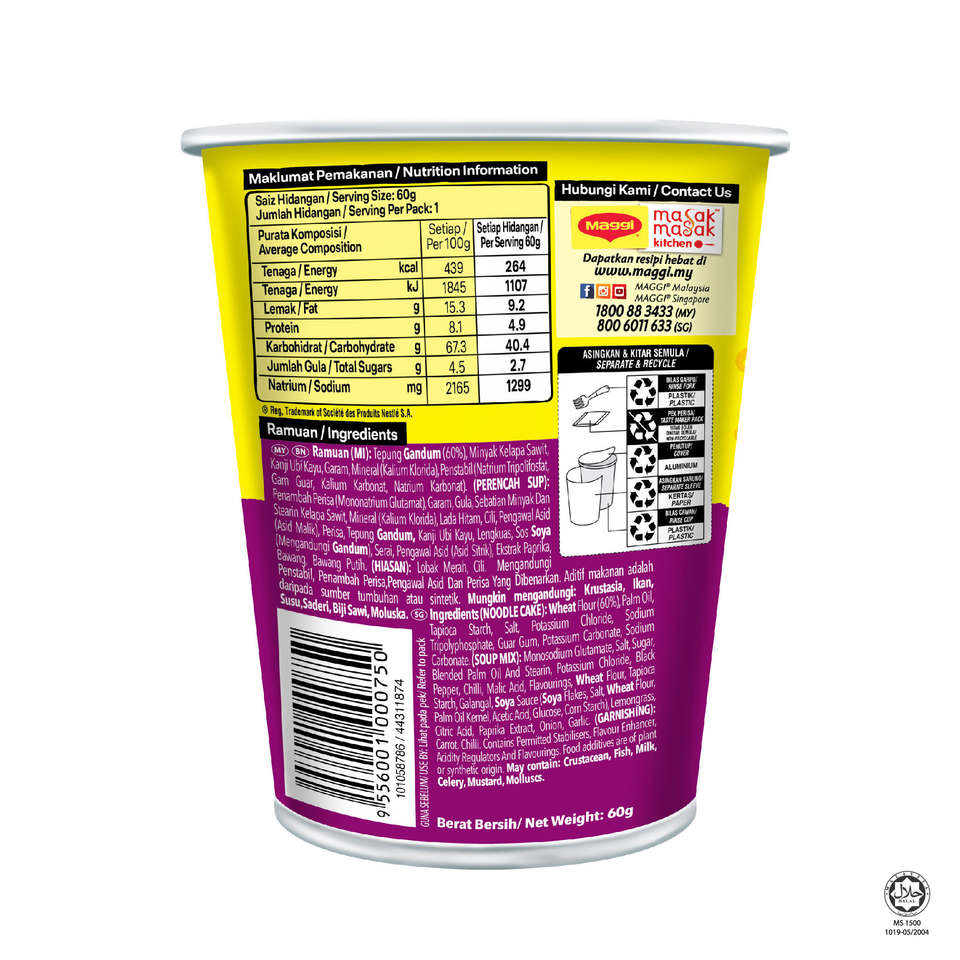 Maggi Instant Noodles Tom Yum 60g Cups Spicy Hot & Sour Thai Flavour