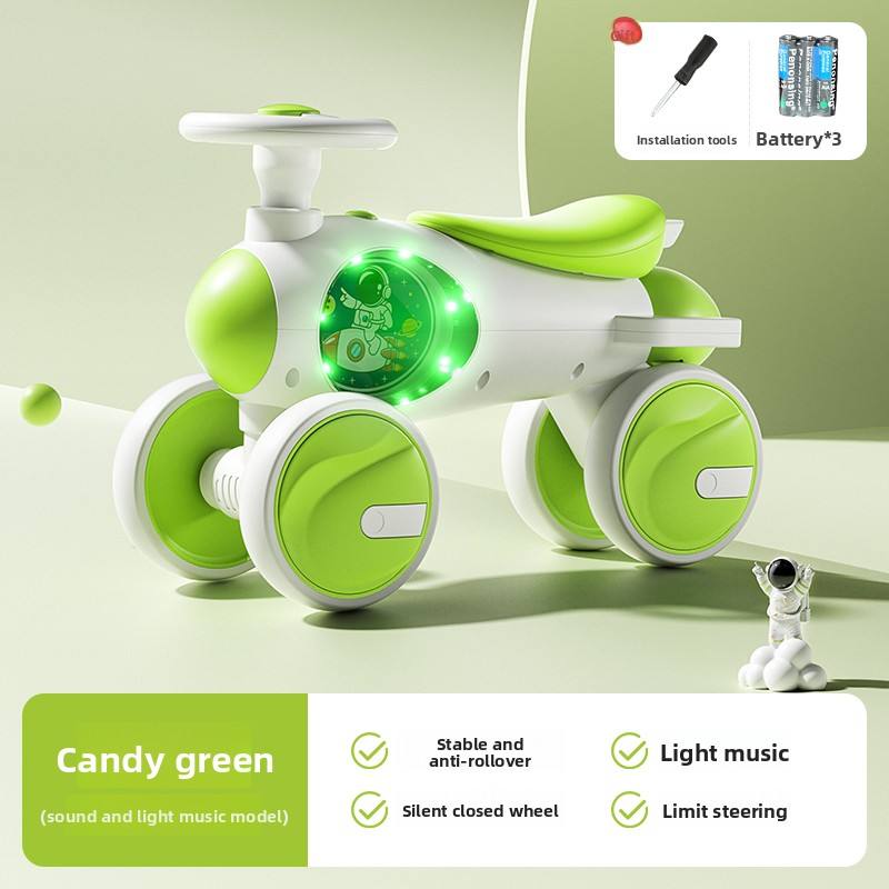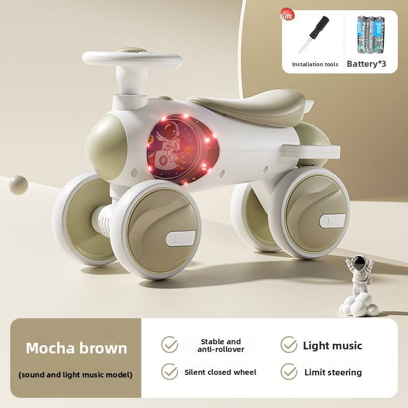 Maika รถเลื่อนสำหรับเด็กพลาสติกแบบ4 in 1ลายหมีนั่งได้สวยงามมีเสียงดนตรีควบคุมแสงผู้ปกครองและที่วางเท้าเด็ก