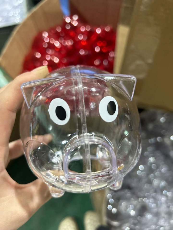 กล่องออมสินพลาสติกใสรูปหมู สีตามสั่ง ได้รับการรับรองมาตรฐาน EN71