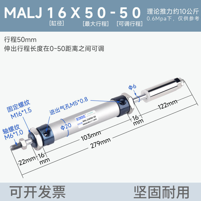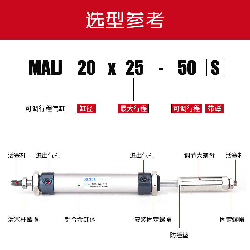 กระบอกลมขนาดเล็ก MALJ ปรับระยะชักได้ 16/20/25/32/40 ชิ้นส่วนนิวเมติกขนาดเล็ก พร้อมขนาด 25*50X75X100X150-50