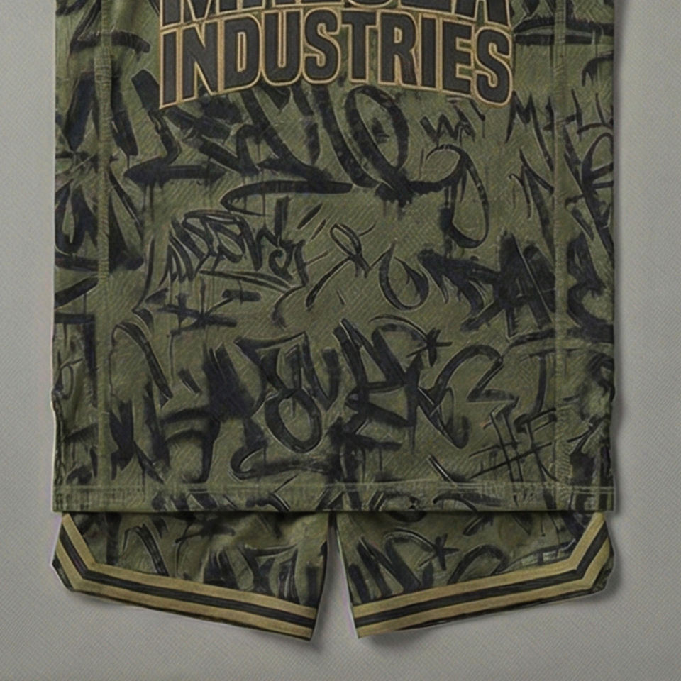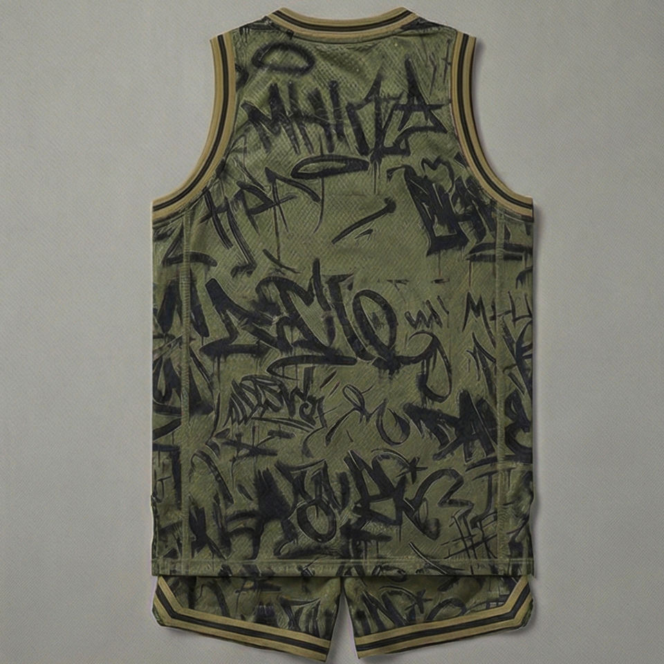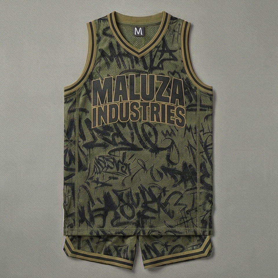 ชุดบาสเก็ตบอลตาข่ายลายกราฟฟิตีพรีเมียม MALUZA ชุดทีมสั่งทำพิเศษ สไตล์อเมริกาและยุโรป แฟชั่นทันสมัย