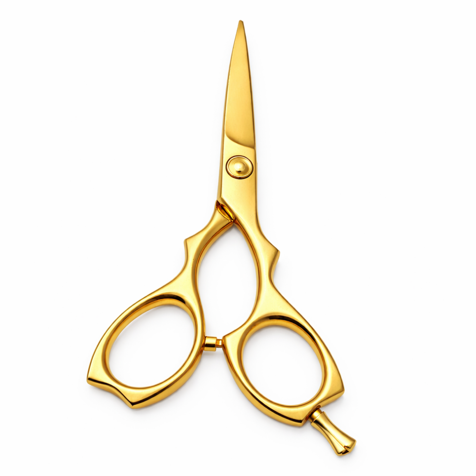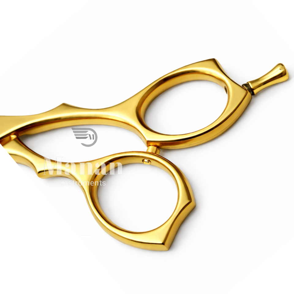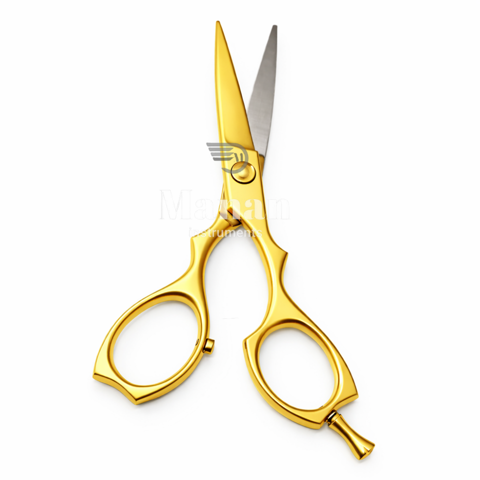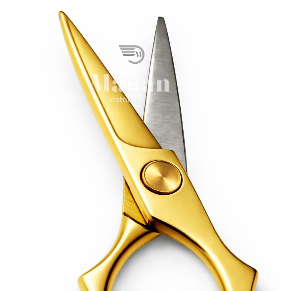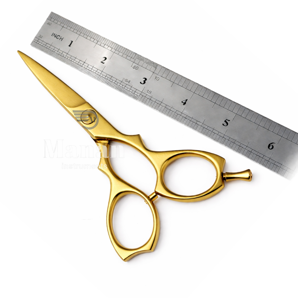 กรรไกรตัดผมมืออาชีพ MANAN INSTRUMENTS รุ่นหรูหรา สีทอง ผลิตจากเหล็กกล้าไร้สนิม 4Cr13 คมกริบ ด้ามจับขนาดกลาง สำหรับคนถนัดขวา