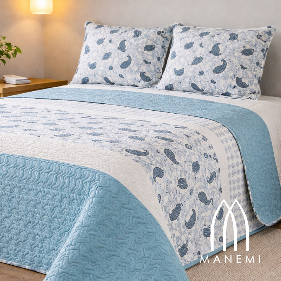 ผ้าคลุมเตียงผ้าฝ้ายฤดูร้อนมานีมิพิมพ์ลายเพสลีย์ ซักได้ ใช้ในบ้าน สไตล์คลาสสิก มีหลายขนาด