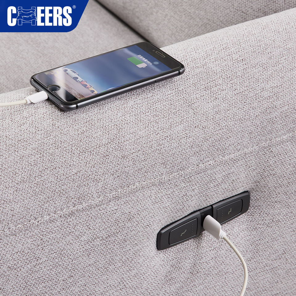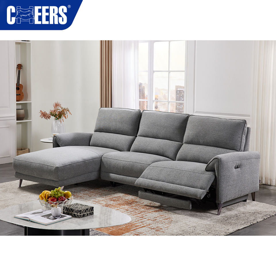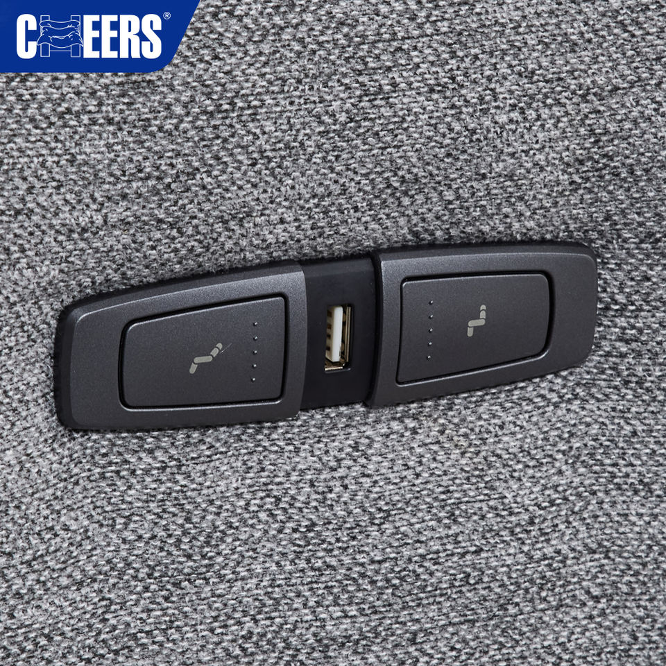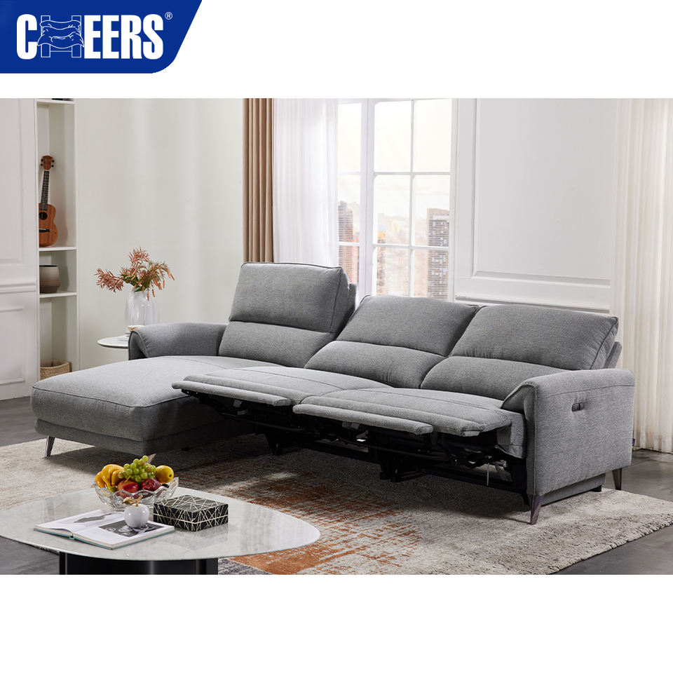 MANWAH CHEERS Modern Euro Fabric Living Room Sofa Grey 5-Seater Power Reclining Sectional with Chaise Console for Apartment