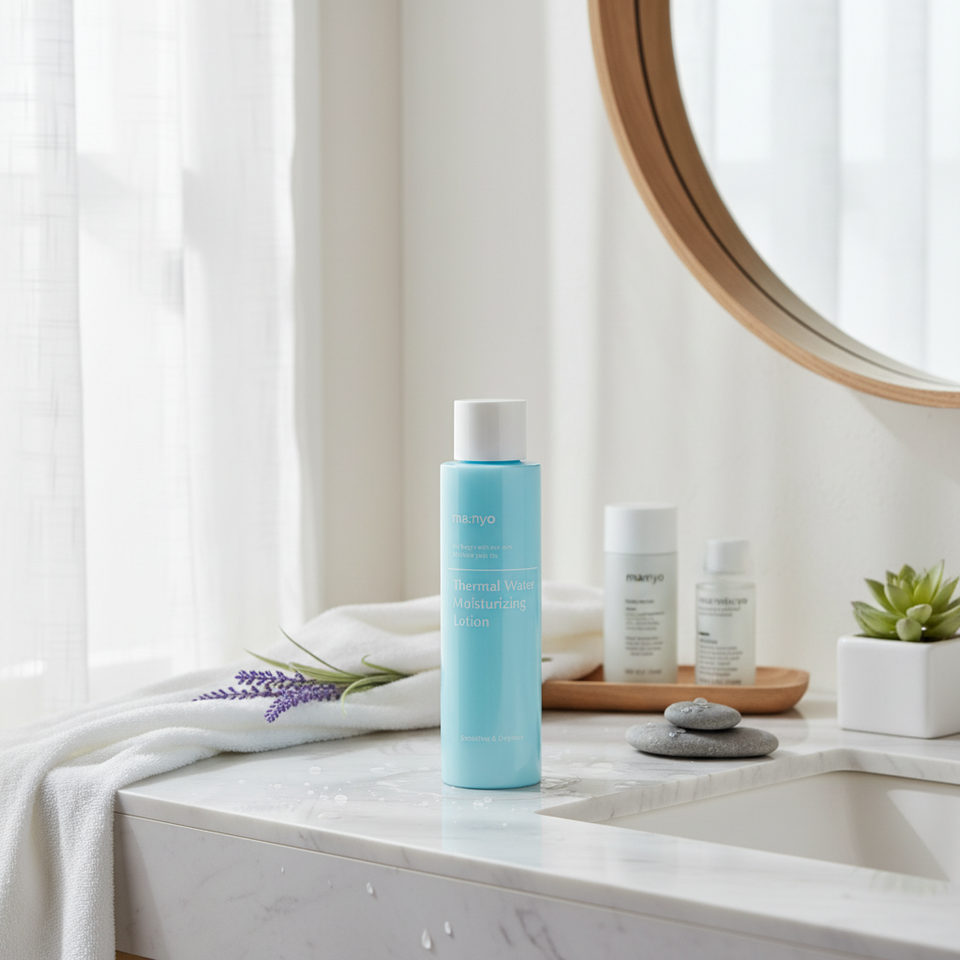 โลชั่นให้ความชุ่มชื้นด้วยน้ำร้อนจากโรงงาน miyo 155มล.-ผลิตในประเทศเกาหลีผิวขาดน้ำแร่ธาตุปรับสมดุล