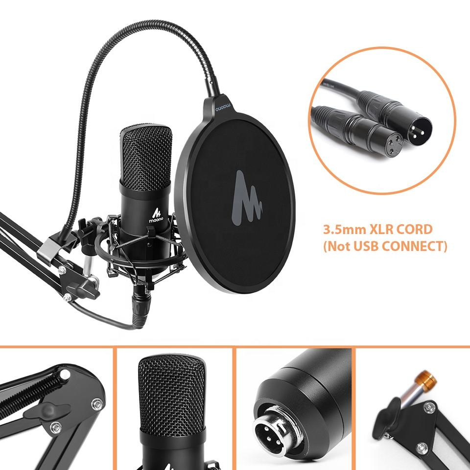 MAONO ชุดไมโครโฟนแบบมีสายสีดำ,สำหรับอุปกรณ์หลายตัวไมโครโฟนคอนเดนเซอร์ XLR มืออาชีพ