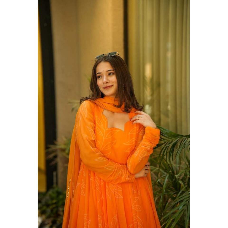 ชุดสูทผ้าลายดอกดาวเรืองสีส้ม TD 1035