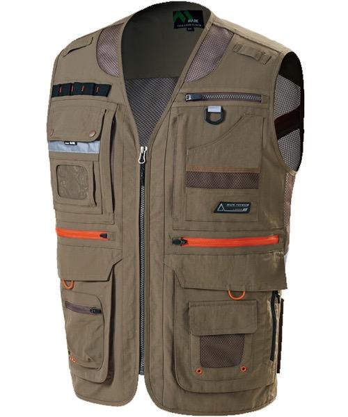 เสื้อกั๊กทำงานแบรนด์เกาหลี MK-481 Taslan รุ่น OEM/ODM หลายกระเป๋า พร้อมช่องใส่บัตรชื่อและแผงหลังตาข่าย