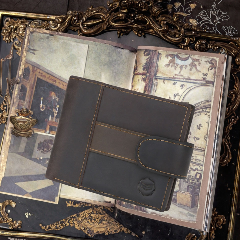 กระเป๋าสตางค์ผู้ชายแบบพับสองตอน ดีไซน์วินเทจ ยี่ห้อ MARRANT ช่องใส่เหรียญด้านหน้า หนังแท้ กันน้ำ ใส่บัตรเครดิต วัสดุโพลีเอสเตอร์