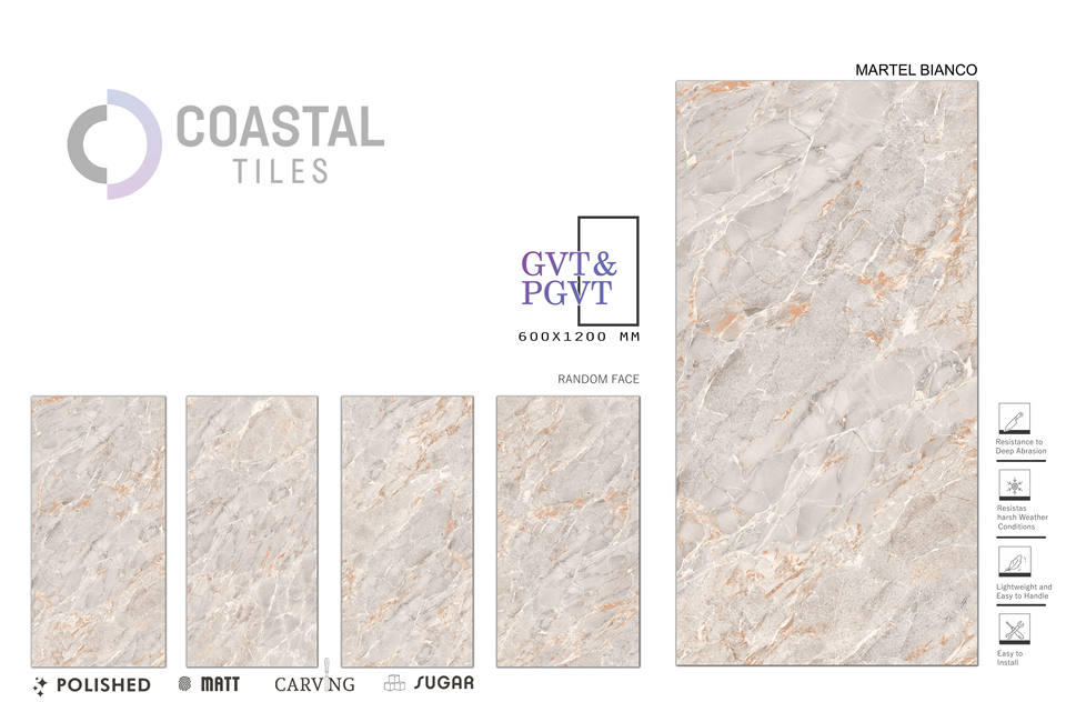 กระเบื้องพอร์ซเลน MARTEL BIANCO 9 มม. เงา ขนาด 600x1200 มม. / 24x48 นิ้ว ดีไซน์โมเดิร์นคลาสสิก พรีเมียม ฟอร์เบริค ได้รับการรับรองมาตรฐาน AAA+ และ CE