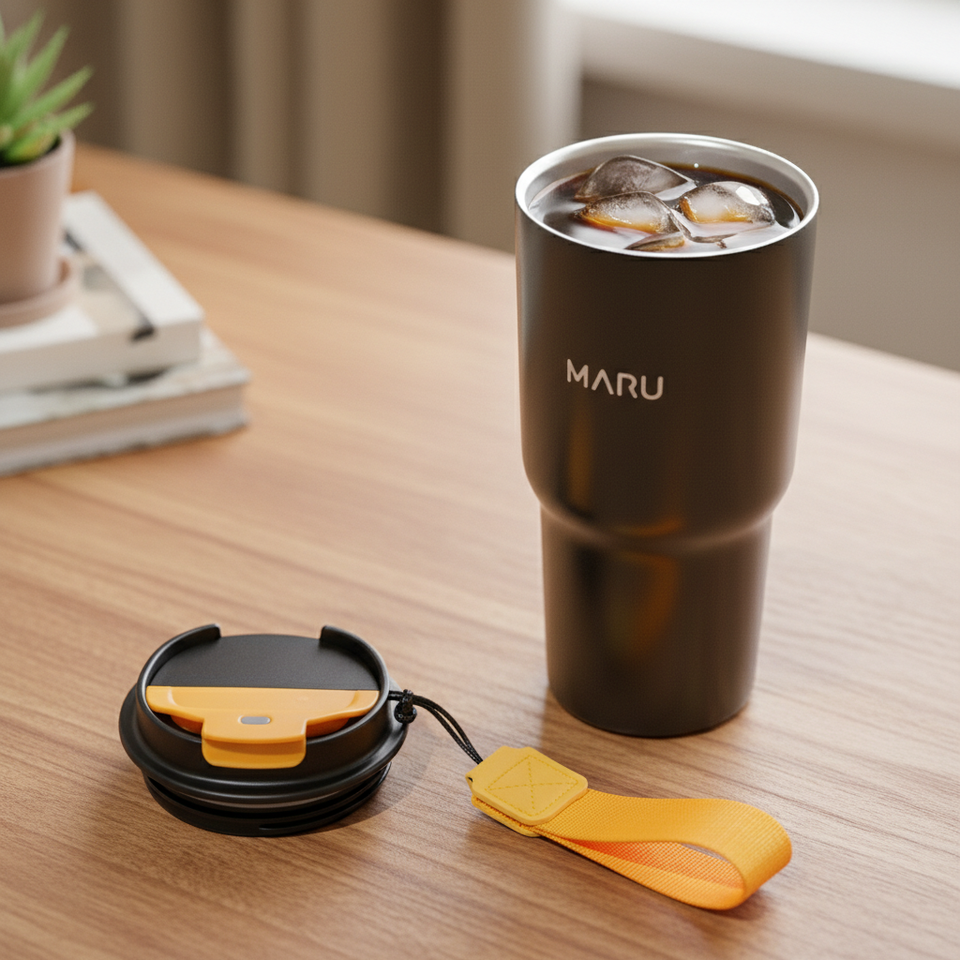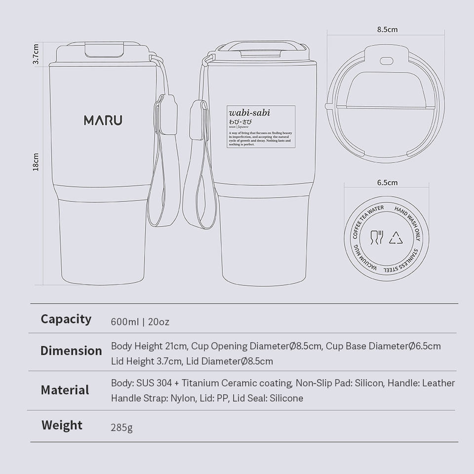 แก้วน้ำ MARU น้ำหนักเบา 20 ออนซ์ พกพาสะดวก ผนังสองชั้น สแตนเลสสตีล 18/8 ขวดสุญญากาศ SUS 304 เคลือบไทเทเนียมเซรามิก 6-12 ออนซ์