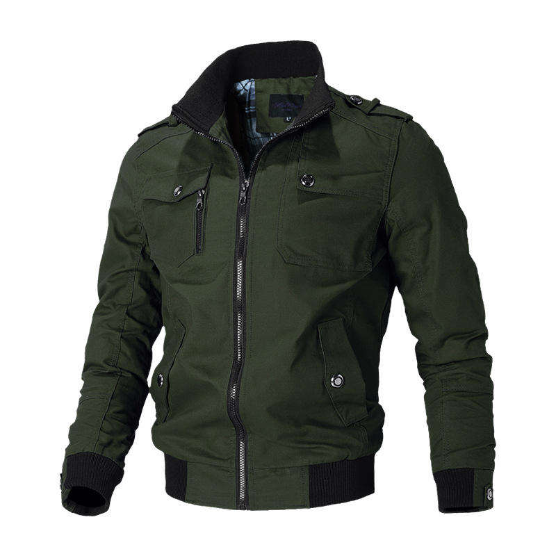 เสื้อแจ็คเก็ตบอมเบอร์ผู้ชายสไตล์สปอร์ต ผ้าวอร์สต์ผสมโพลีเอสเตอร์/คอตตอน แห้งเร็ว ซิปปิด คอตั้ง สไตล์ลำลอง