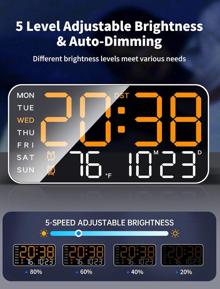 Mashi 8.4นาฬิกาติดผนังดิจิตอลขนาดใหญ่, นาฬิกาปลุก LED ที่มีตัวเลขขนาดใหญ่, วันที่, อุณหภูมิ, DST