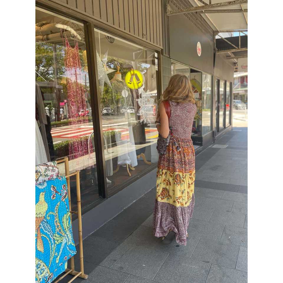 แม็กซี่เดรส,แขนกุด,โบฮีเมียน,งานเย็บปะติดปะต่อกัน