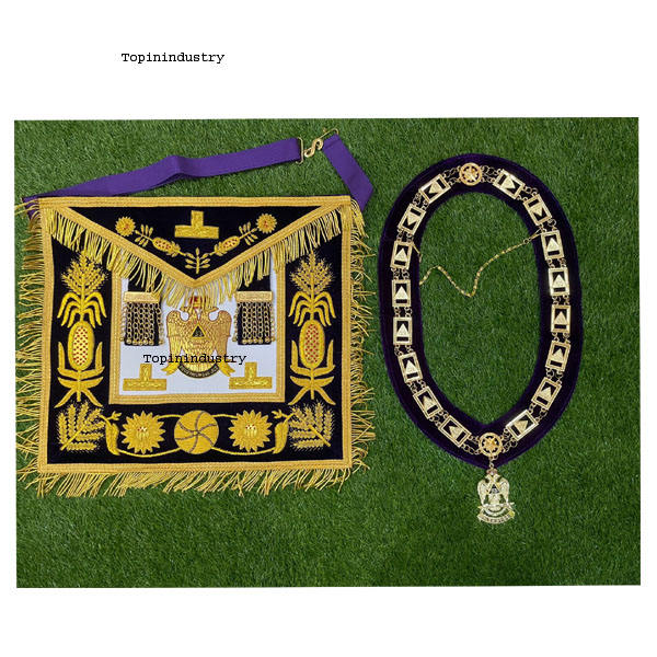 Masonic regalia ชุดผ้ากันเปื้อนสีน้ำเงินกับคอสายโซ่เครื่องปัก100% lambskin & CHAIN COLLAR Free jewet Lodge