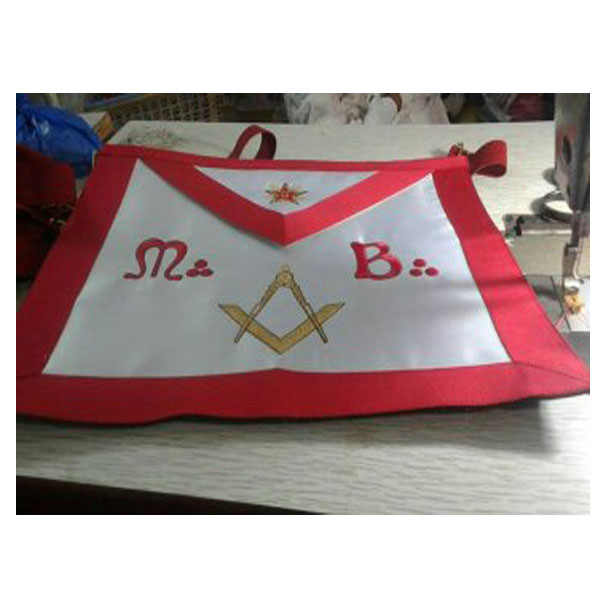 Masonic regalia Master ผ้ากันเปื้อนสำหรับพิธีมอบดีลักซ์ได้รับการยอมรับแบบโบราณสีแดงจีบปักด้วยมือ