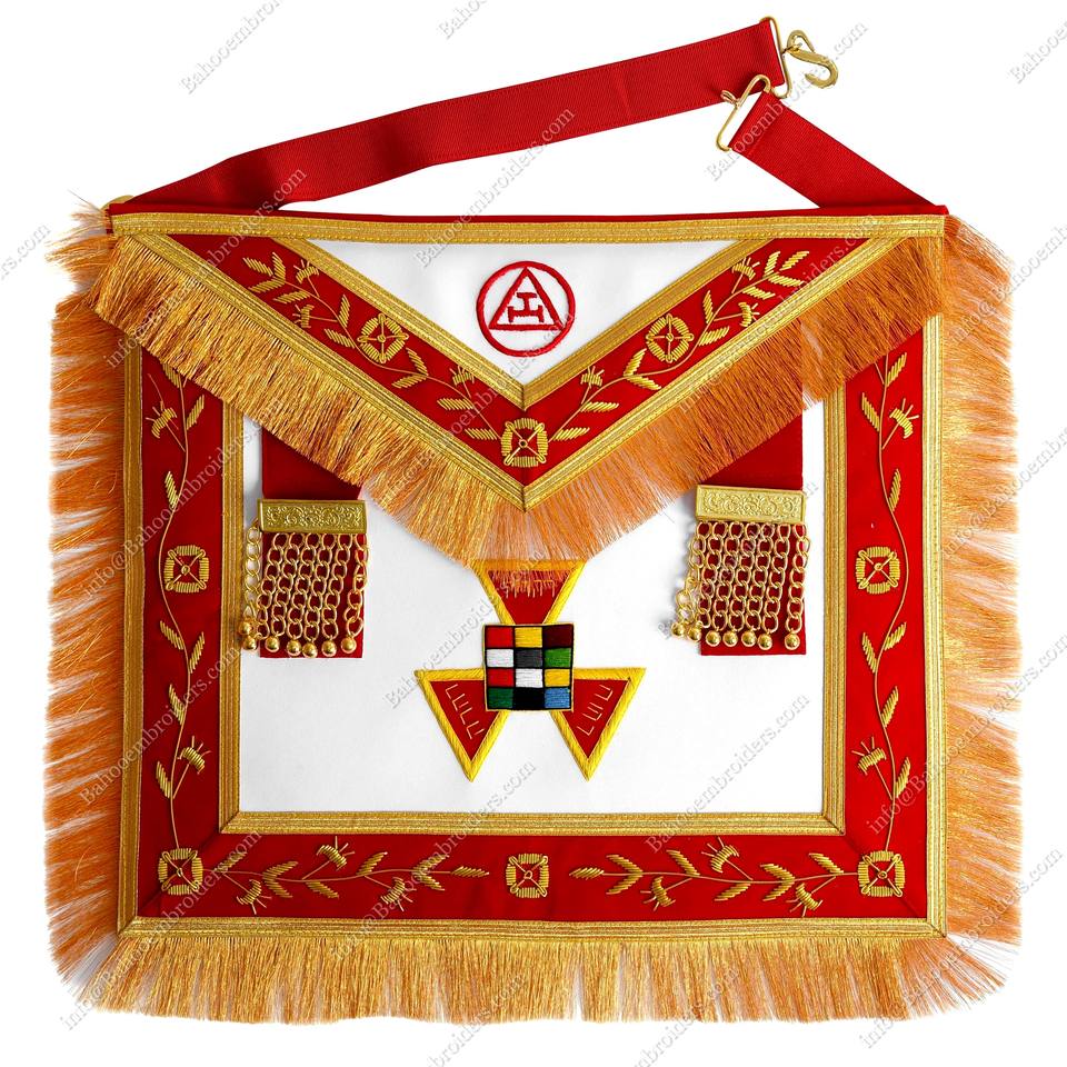 Masonic regalia past high Priest Royal Arch apron-กำมะหยี่สีแดงมีพู่-เย็บปักถักร้อยมือสีแดงกับขอบ