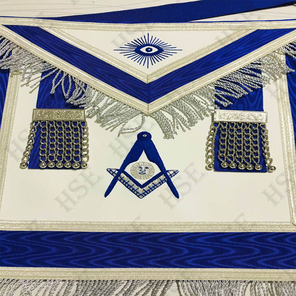 ผ้ากันเปื้อนสีน้ำเงินประดับปลอกคอโซ่และอัญมณี