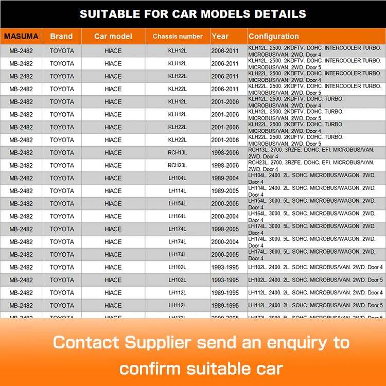 | TOYOTA | HIACE IV Bus | 1989.08-2003.08 | 2.4 (88KW,120PS) |