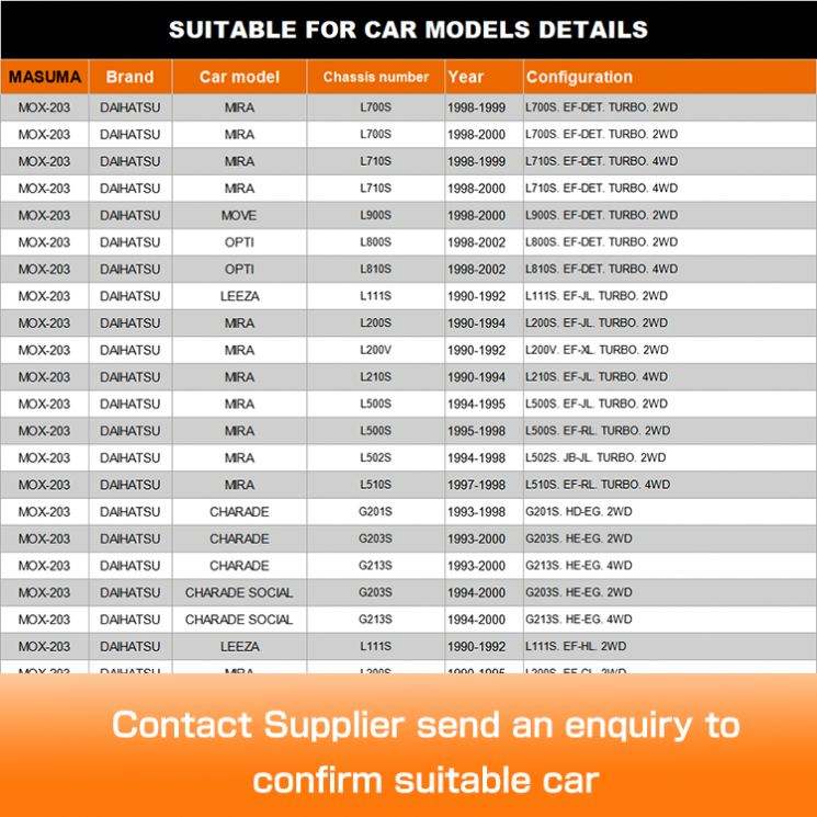 16401-87208, 1A05-15-205, B3C7-15-205, FF52-15-205, RF6C-15-205, MB660667, MQ900380, MQ909622, MQ911545, MR481216, 21430-4A0A1, 21430-HA00A, 21430-HC050, 21430-HC051, 17320-56B00, 17920-50F00, 17920-56B00, 17920-76G00, 16401-15520, 16401-20310OE NO