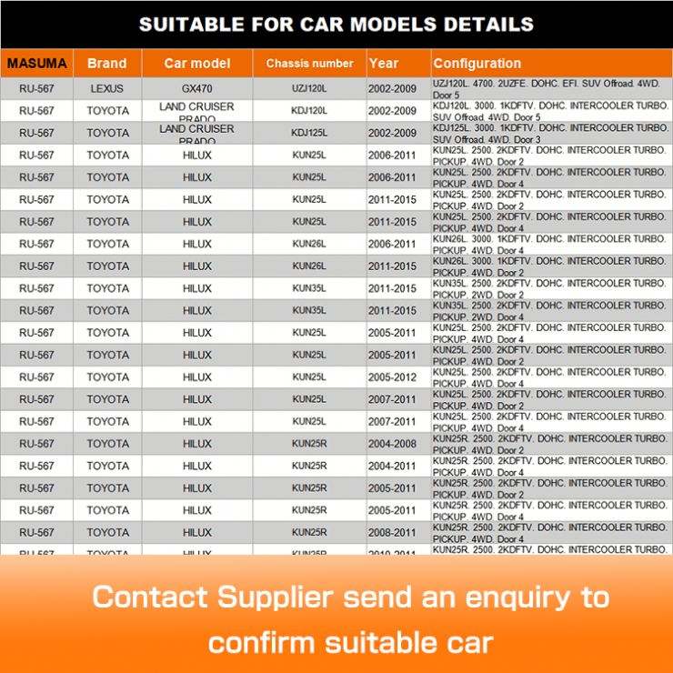 | TOYOTA | LAND CRUISER 200 | 2010.09- | 4.6 V8 (227KW,309PS) |
