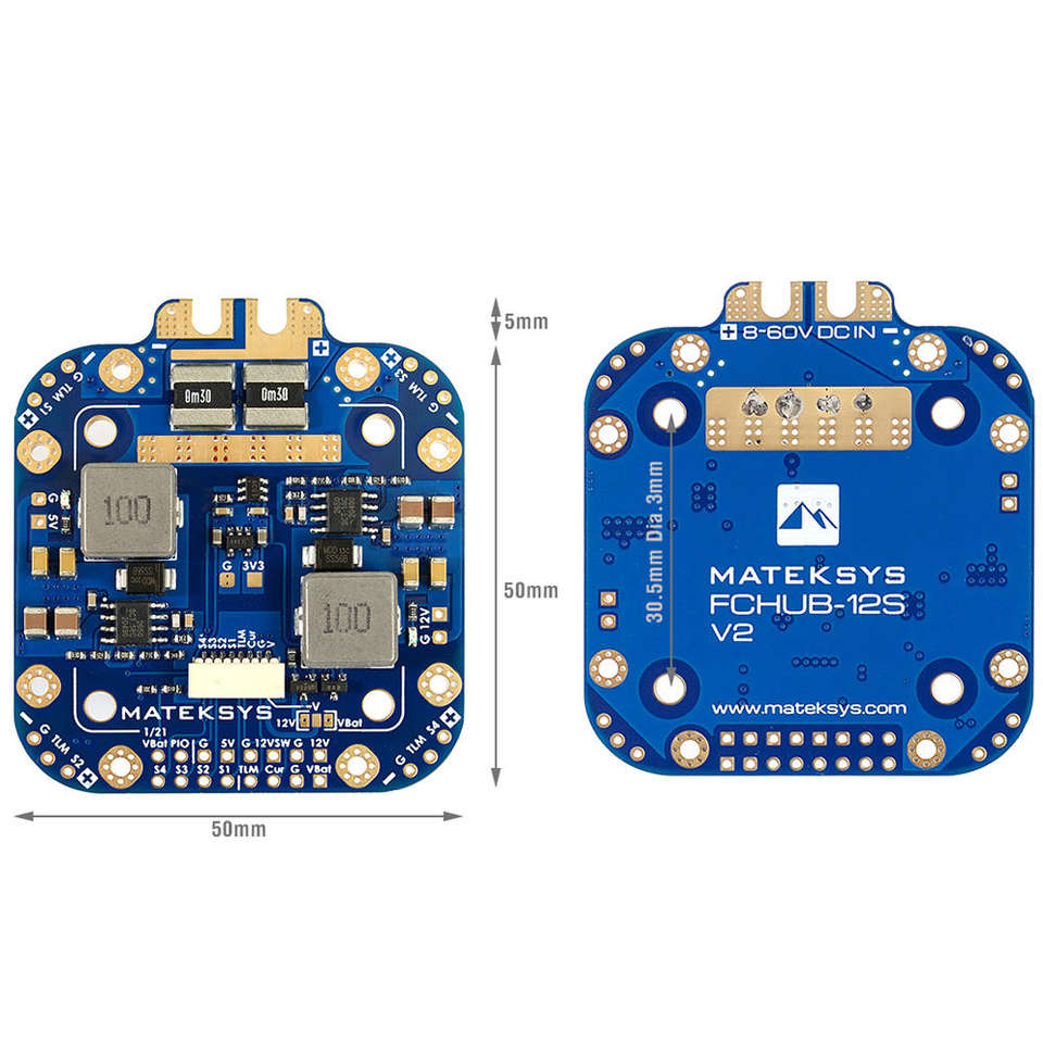 Mateksys fchub 12S แผงกระจายพลังงาน V2 BEC สำหรับระบบควบคุมการบิน RC