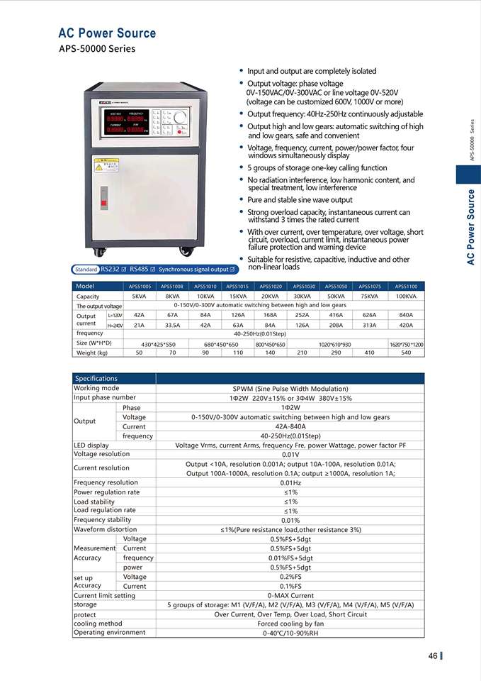 15KVA เมทริกซ์3เฟสในเฟสเดียวความถี่แปรผันตู้จ่ายไฟแหล่งจ่ายไฟ AC 40-250Hz