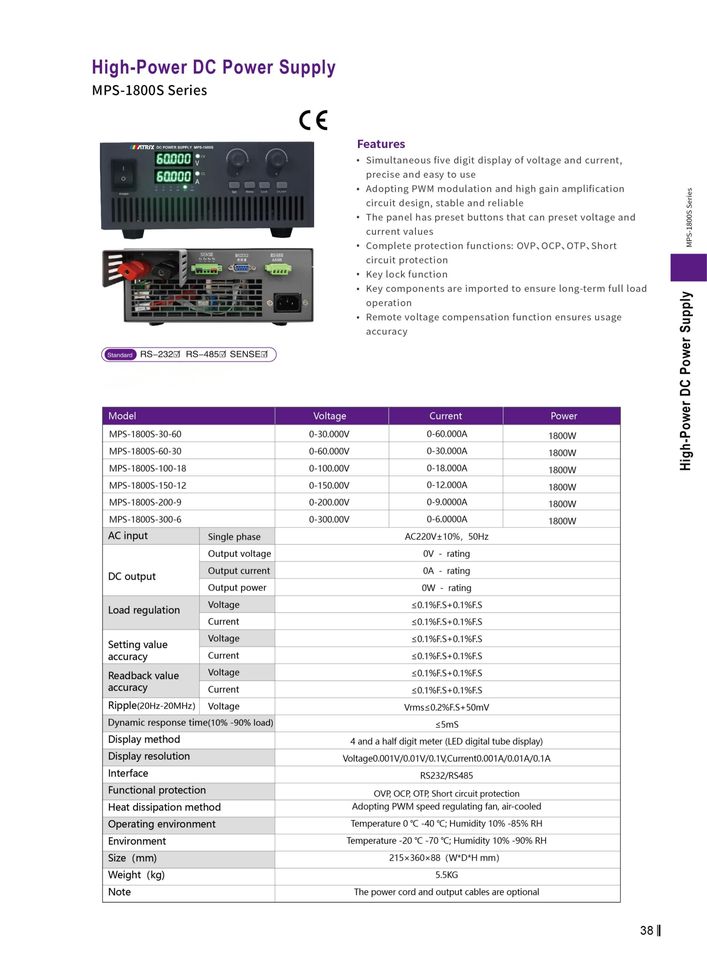 Ripple(20Hz-20MHz) Voltage:Vrms≤0.2%F.S+50mV