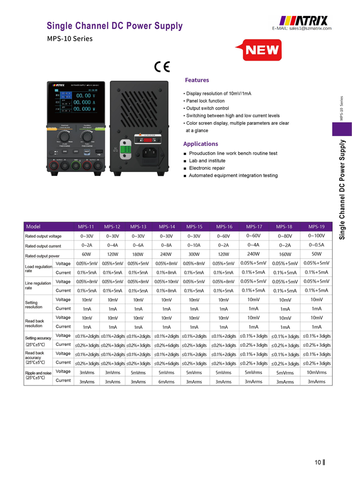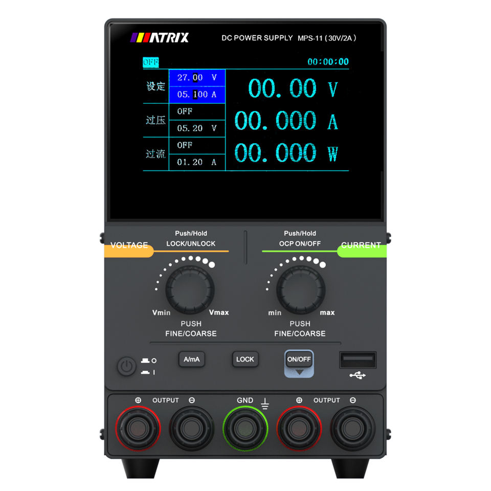 MPS11เมทริกซ์10mV 30โวลต์2A 60วัตต์1mA 2แชนเนลตัวแปรในห้องปฏิบัติการแหล่งจ่ายไฟ DC เชิงเส้นพร้อมหน้าจอสี