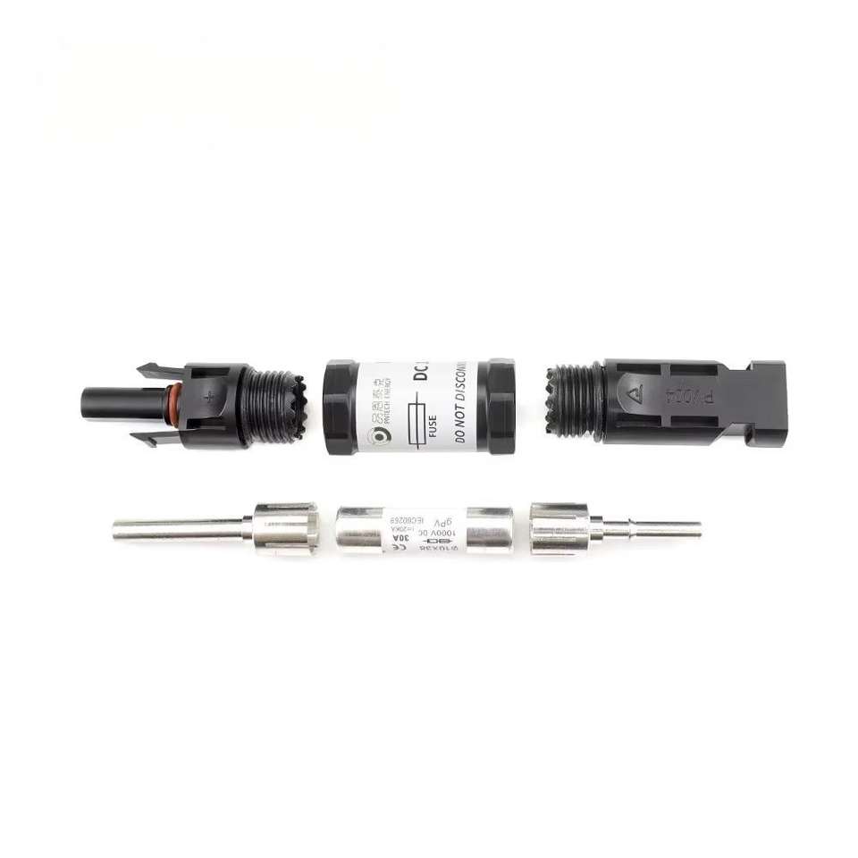 PV004-F เมตริกซ์ระบบพลังงานแสงอาทิตย์ขั้วต่อไดโอดจัดอันดับ IP65 1000V DC ตัวผู้ตัวเมียที่ใส่ฟิวส์ทองแดงชุบดีบุก