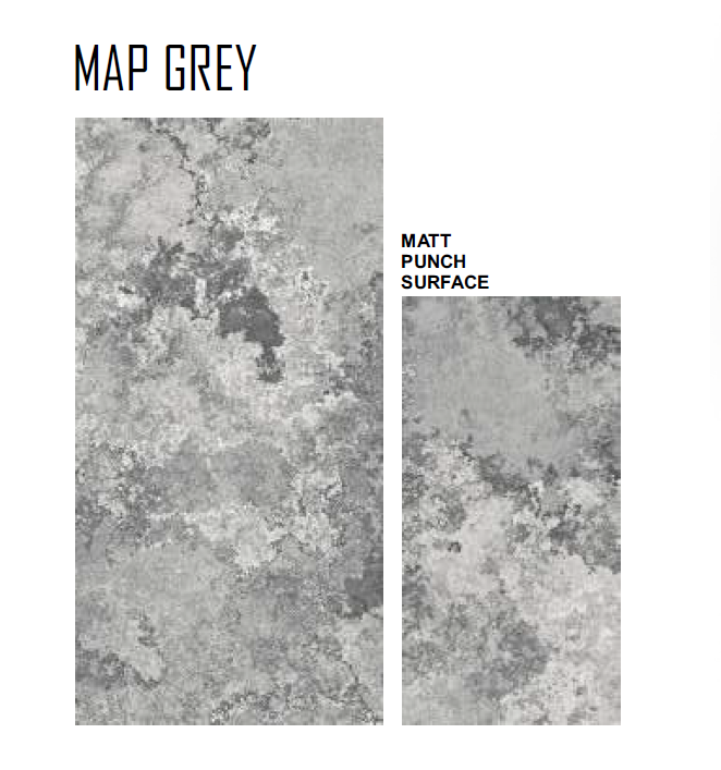 กระเบื้องปูพื้นดิจิตอลเคลือบเงา รุ่น MATT PUNCH SURFACE ขนาด 600x1200 มม. ลายแผนที่ ดีไซน์อิตาลี สีเทา